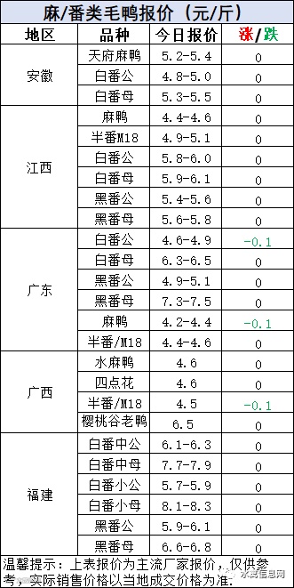 南方毛鸭报价跌后回调。