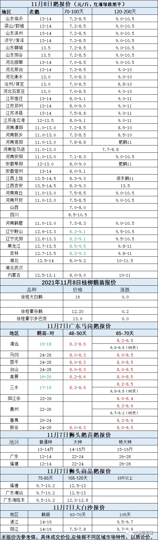 2021年11月08日各品种鹅苗价格