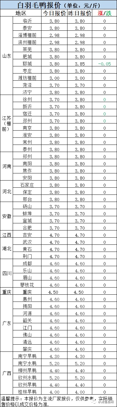 今日北方鸭苗跌后持稳,但各企业执行参差不齐,部分企业抗价。市场成交价较乱,高报低走较多,大家注意询价。当前市场疫情主导,挺价难度极大。