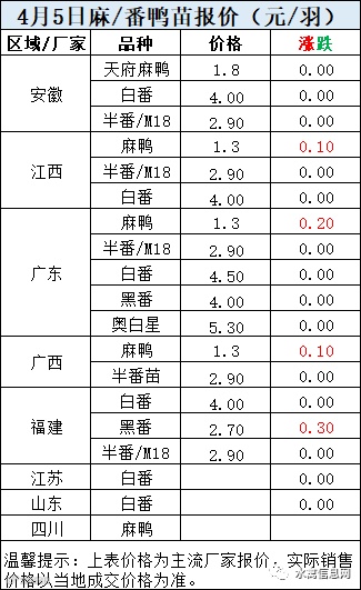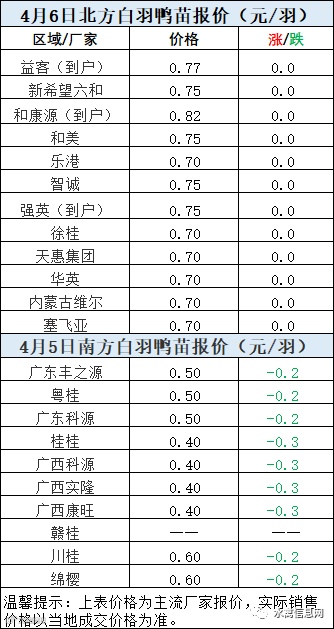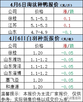 一、4月5日晚至4月6日 白羽肉鸭报价