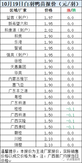 一、10月19日白羽鸭苗报价