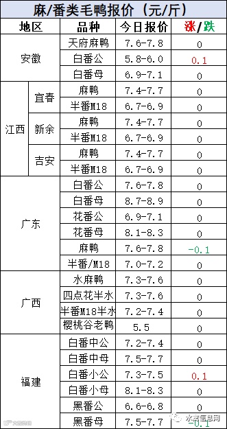 明日麻鸭苗报价下滑0.2元/羽。半番鸭苗报价下滑0.2元/羽。