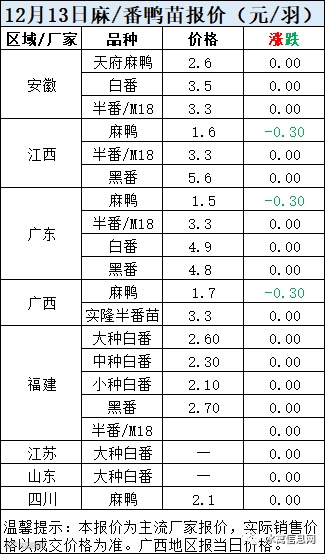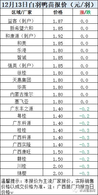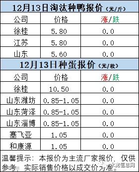 一、12月12日晚至12月13日 白羽肉鸭报价