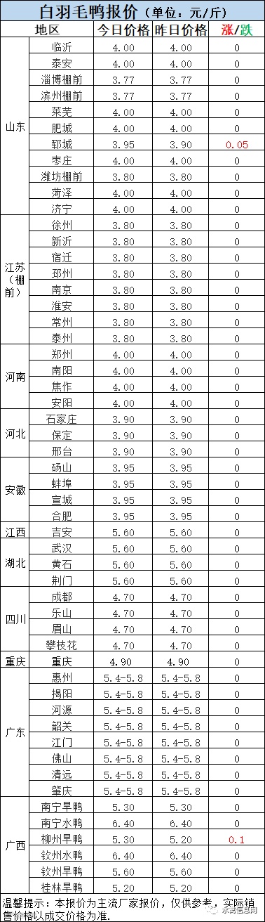 2:南方白鸭活禽报价落后持稳,局部回调。