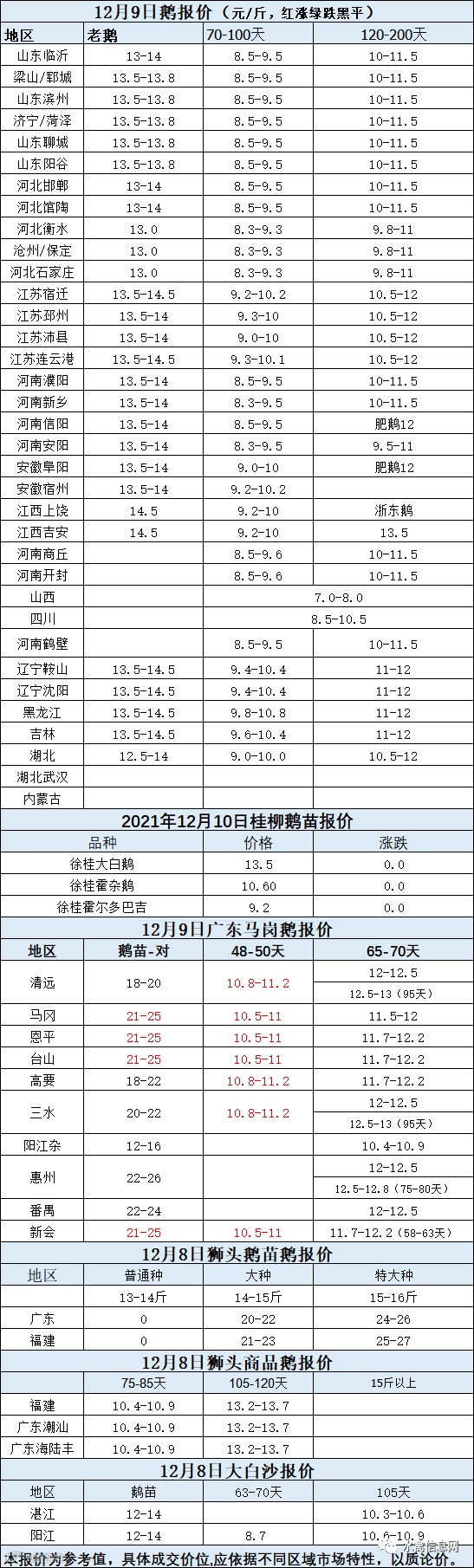 2021年12月09日各品种鹅苗价格