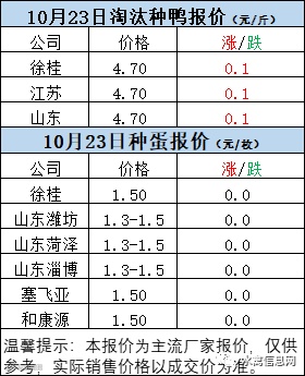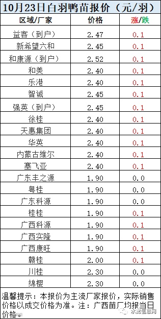 一、10月23日白羽鸭苗报价