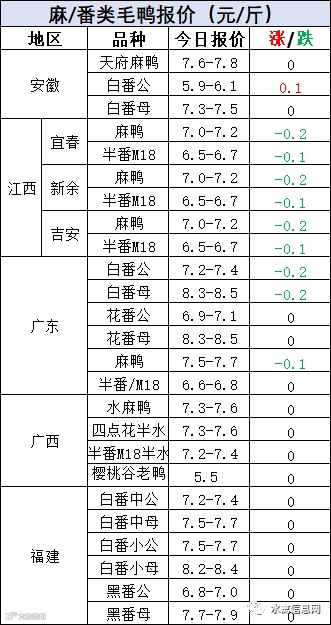 明日麻鸭苗报价平稳。半番鸭苗报价下滑0.2元/羽。
