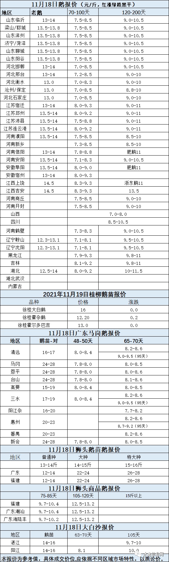 2021年11月18日各品种鹅苗价格
