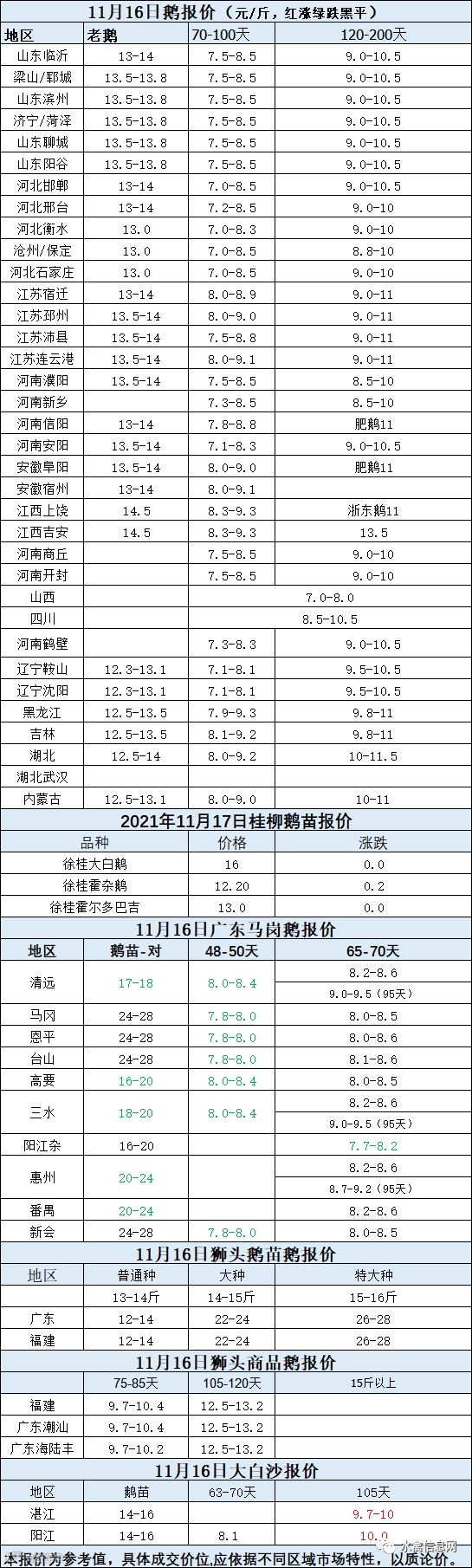 2021年11月16日各品种鹅苗价格
