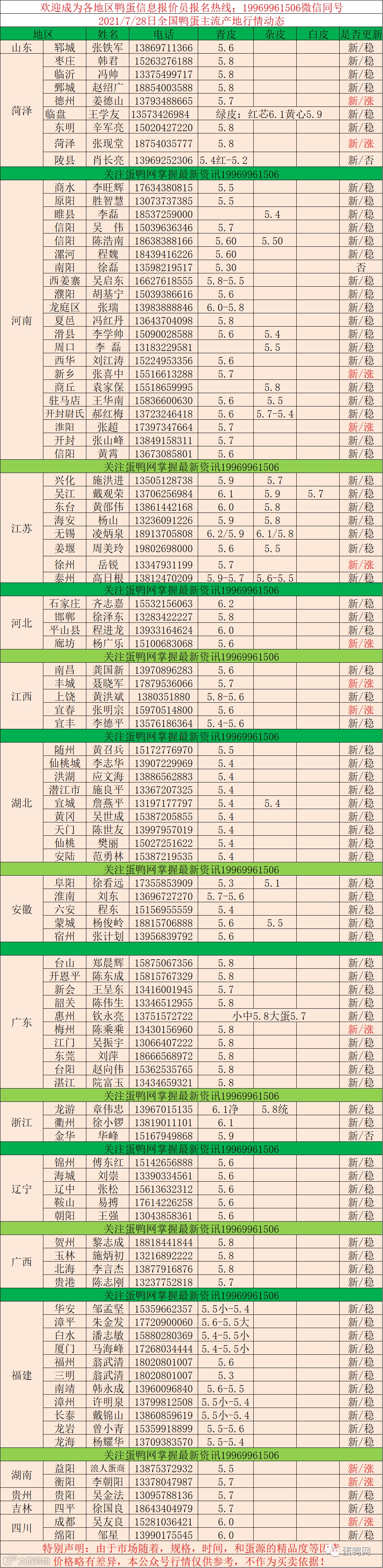 2021年7月27日鲜鸭蛋价格:初产至大蛋5.6(鸭蛋价格仅供参考)
