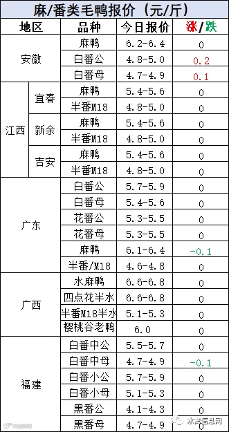 明日麻鸭苗报价稳定。半番鸭苗报价上涨0.2元/羽。