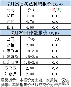 一、7月29日白羽鸭苗报价