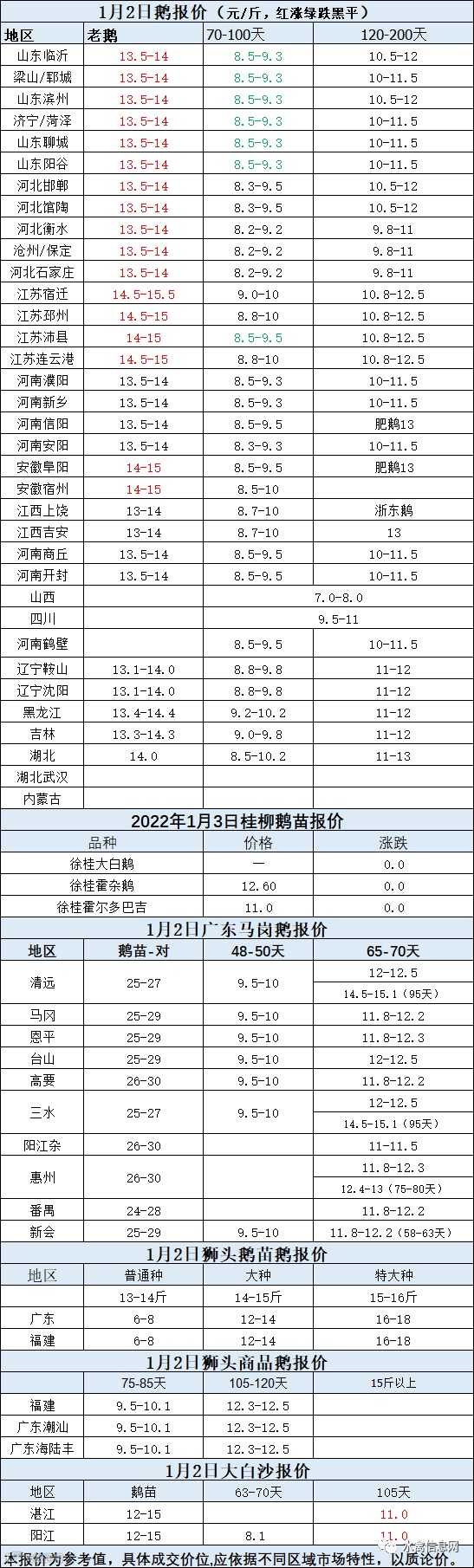 2022年1月2日各品种鹅苗价格