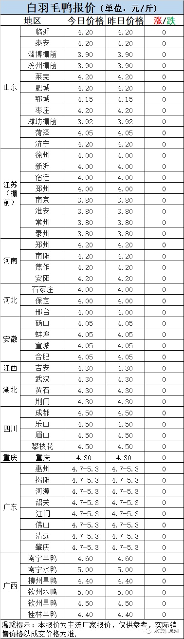 明日麻鸭苗报价稳定。半番鸭苗报价稳定。