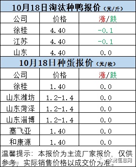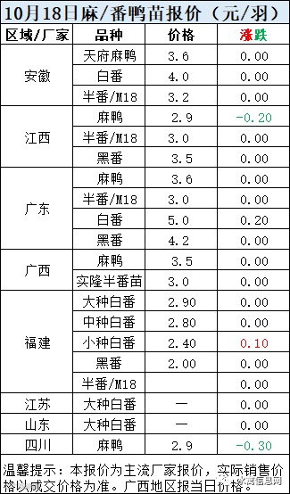 一、10月18日白羽鸭苗报价