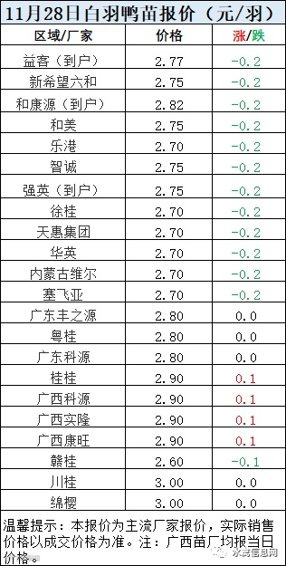一、11月28日白羽鸭苗报价