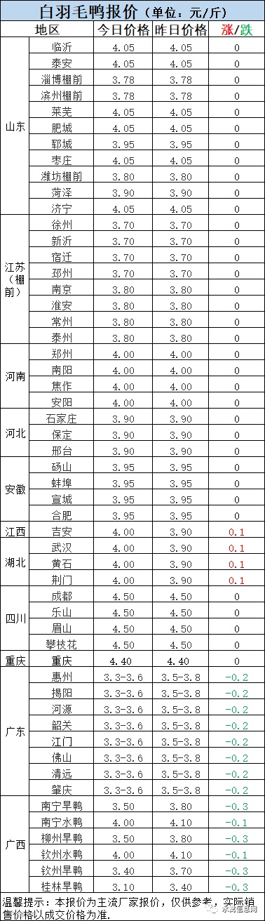 2:南方白鸭活禽今晚报价连续下滑。