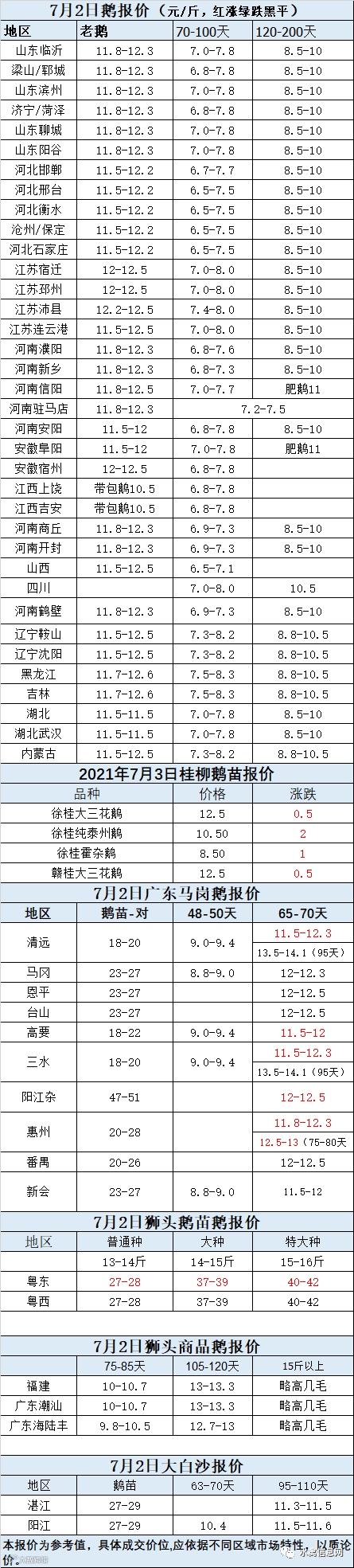 2021年7月02日鹅种蛋价格(元/枚)停报