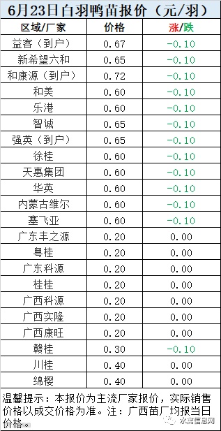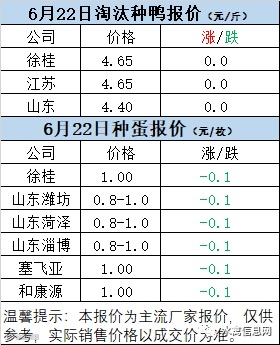一、6月22日晚至6月23日 白羽肉鸭报价