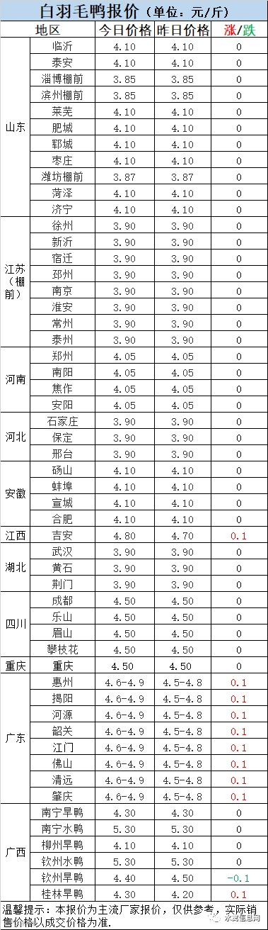 2:南方活禽区域,五一鸭预备上市。广东、广西今晚整体报价持稳,局部小幅调整。