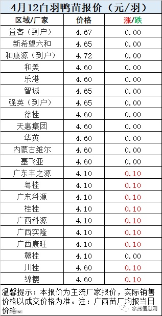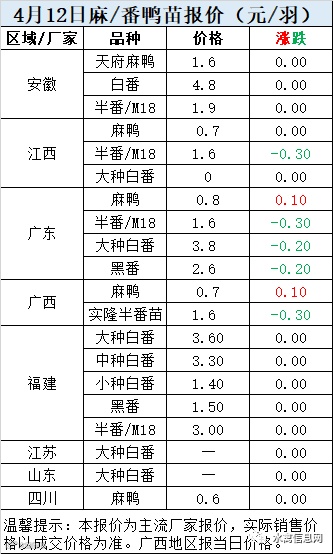 一、4月11日晚至4月12日 白羽肉鸭报价