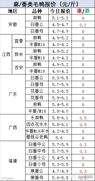明日麻鸭苗报价下调0.2元/羽,半番鸭苗谷底反弹0.3元/羽。