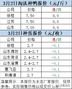 一、3月1日晚至3月2日 白羽肉鸭报价