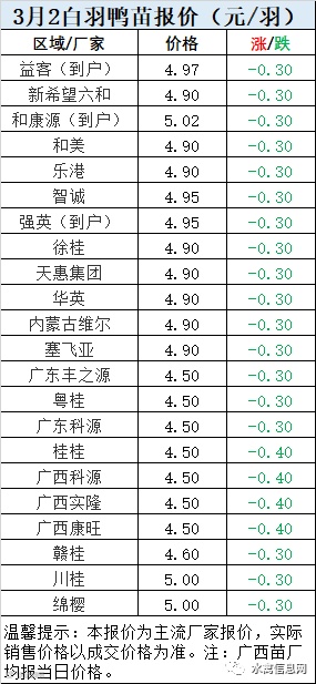 一、3月2日白羽鸭苗报价