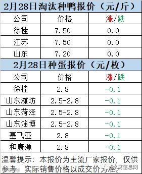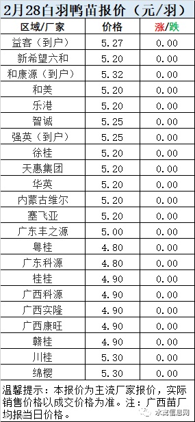 一、2月27日晚至2月28日 白羽肉鸭报价