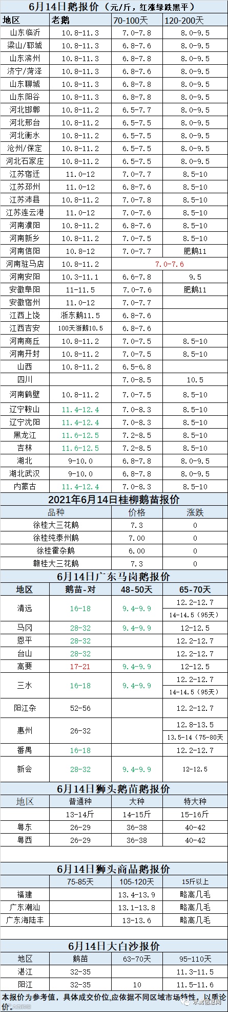 2021年6月14日鹅种蛋价格(元/枚)停报