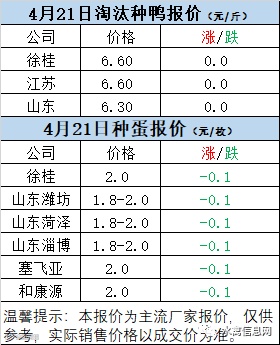 一、4月20日晚至4月21日 白羽肉鸭报价