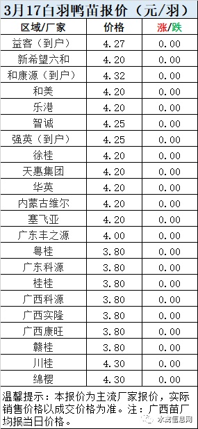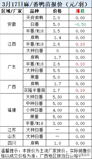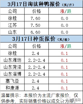 一、3月16日晚至3月17日 白羽肉鸭报价
