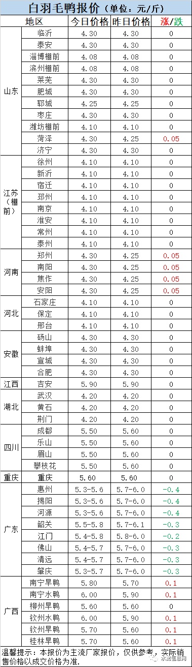 1:今晚北方分割鸭区域报价整体稳定,局部区域涨跌调整。北方鸭价整体处于温吞状态,产能减少但成本高涨,消费无力,行业利润较低。