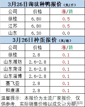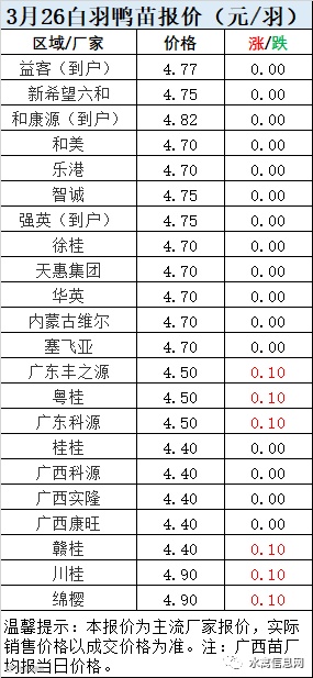 一、3月26日白羽鸭苗报价