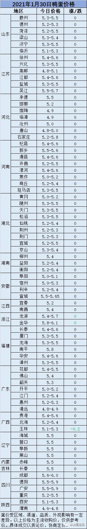 【鸭蛋价格】2021年1月30日鸭蛋报价:稳中趋弱,跌宕调整。 益牧堂水禽信息