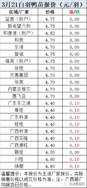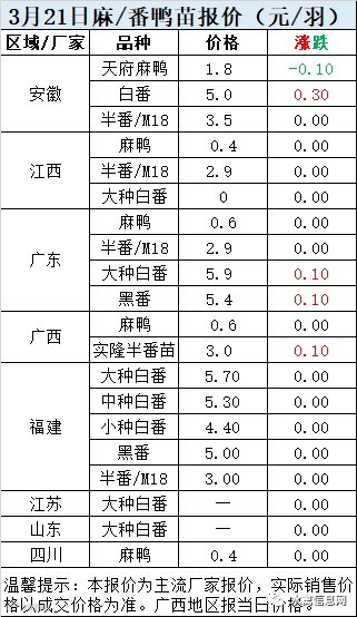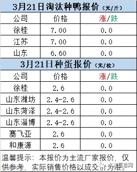 一、3月20日晚至3月21日 白羽肉鸭报价