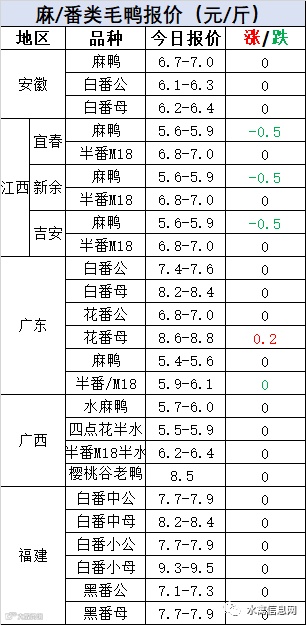 明日麻鸭苗跌后盘稳。明日半番鸭苗报价稳定。