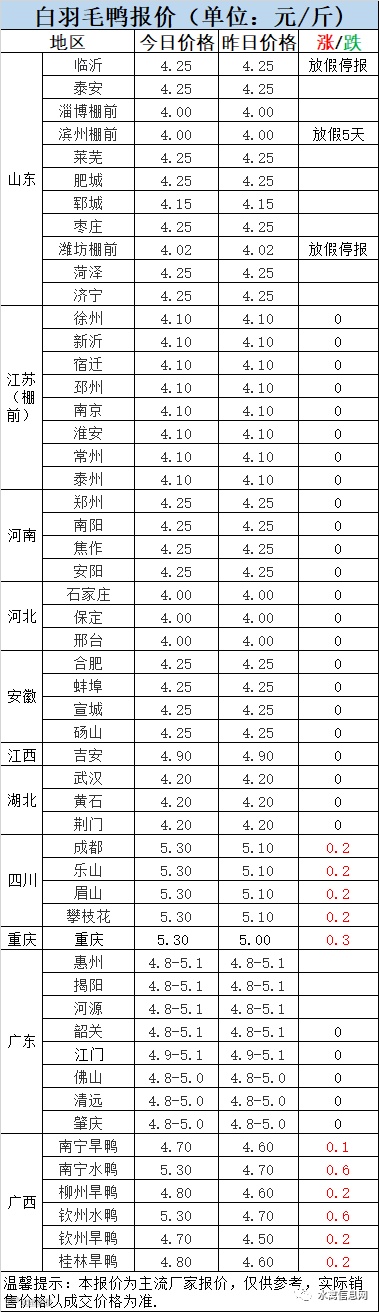 2:南方活禽区域:广东今晚涨后盘稳,广西毛鸭继续追涨,水鸭去库存后快速上涨。
