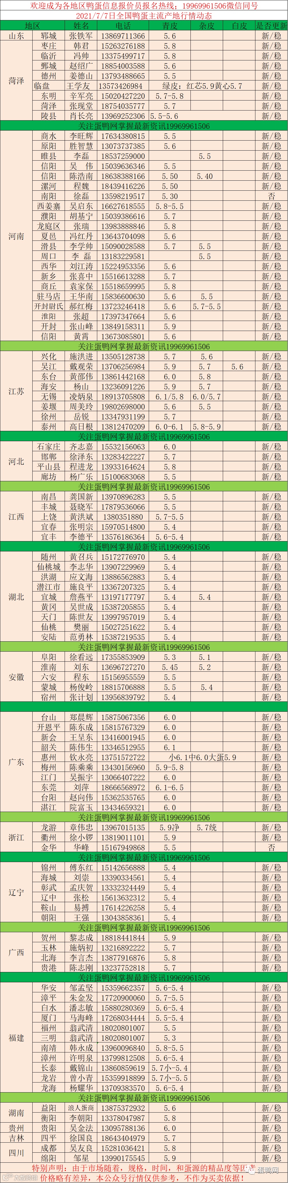 2021年7月7日鲜鸭蛋价格:初产至大蛋5.4(鸭蛋价格仅供参考)
