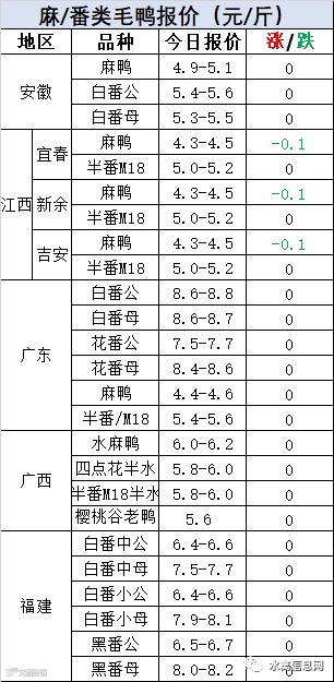 明日麻鸭苗报价稳定,半番鸭苗报价稳定。