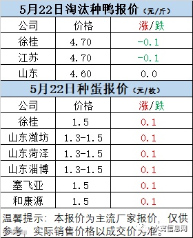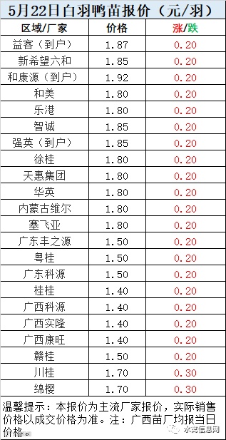 一、5月21日晚至5月22日 白羽肉鸭报价