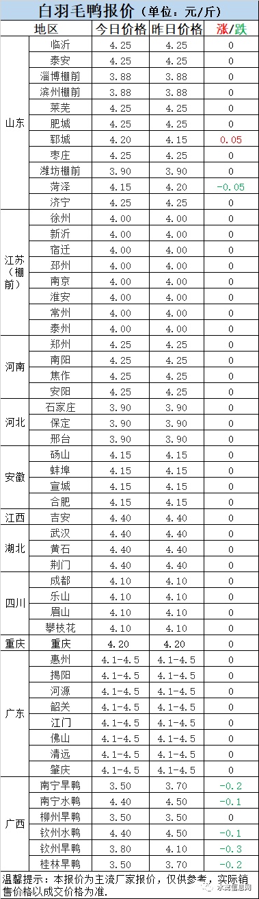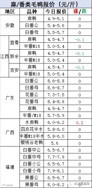 明日麻鸭苗报价上涨0.1元/羽。半番鸭苗报价上涨0.1元/羽。