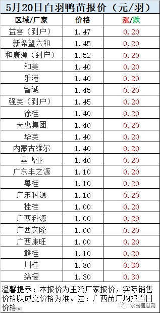 一、5月19日晚至5月20日 白羽肉鸭报价