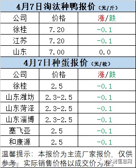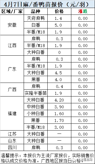 一、4月7日白羽鸭苗报价