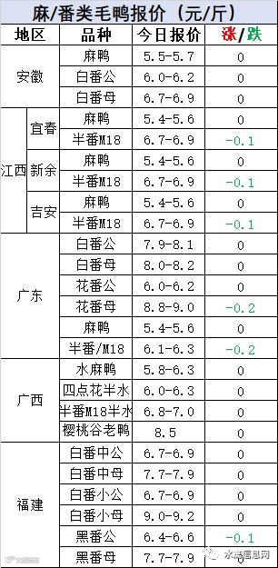 明日麻鸭苗/半番鸭苗报价稳定。种禽基数较大,养殖端利润较差,苗价整体仍处于低谷。