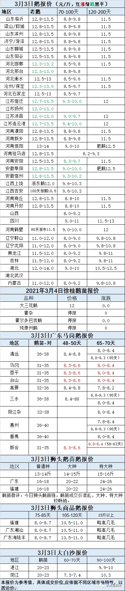 2021年3月03日鹅苗价格