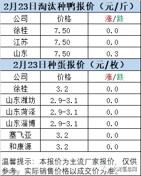 一、2月22日晚至2月23日 白羽肉鸭报价