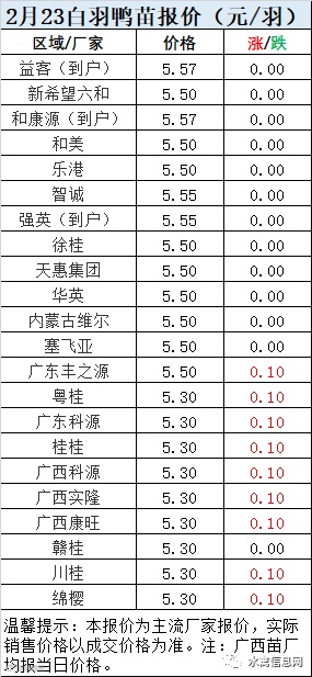 一、2月23日白羽鸭苗报价