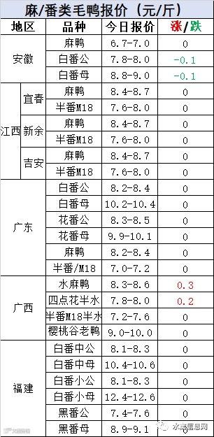 明日麻鸭苗继续上涨0.2元/羽,半番鸭苗报价稳定。