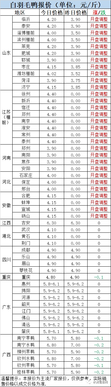 当前市场出苗较少,局部苗价持续上涨。但应该指出的是后续毛鸭很难承受高昂的饲料价格叠加暴起的鸭苗价格,应警惕部分品种苗价过热。